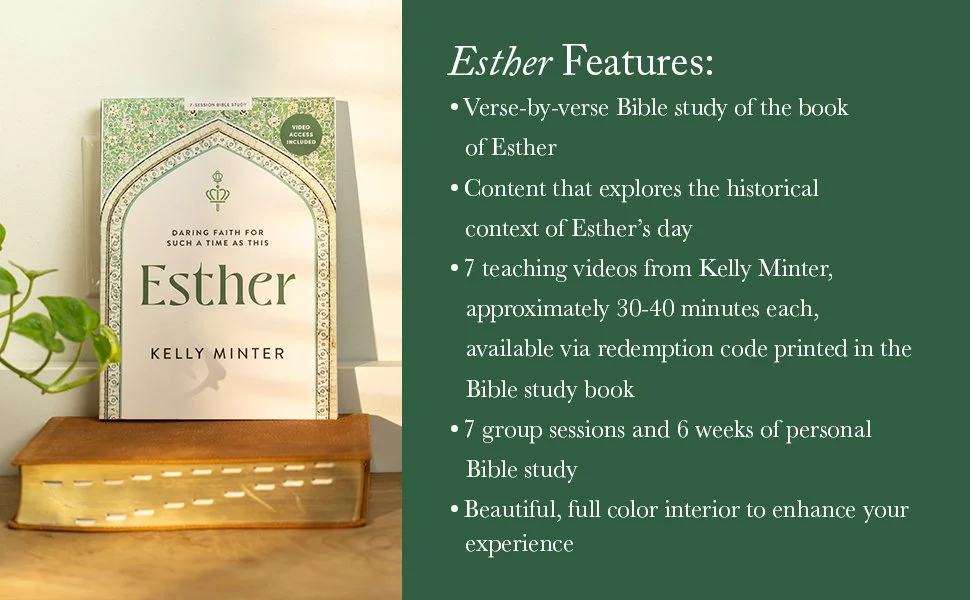 Esther: Daring Faith for Such a Time as This is a Bible study by Kelly Minter that explores the story of Esther and her cousin Mordecai, highlighting their courageous faith in the face of challenging circumstances. The study includes seven sessions and video content, encouraging participants to understand God's faithfulness and their role in His redemptive story.